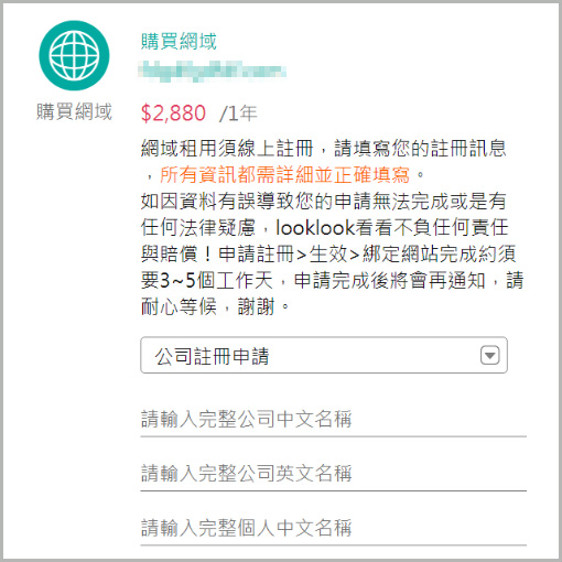 5.完成付款完成後,LOOKLOOK會幫您開始線上申請註冊與綁定,整個程序:申請註冊>生效>綁定網站完成約須要3~5個工作天,申請完成後將會再通知,請耐心等候,謝謝。