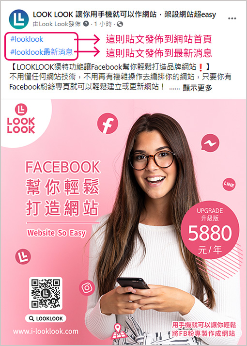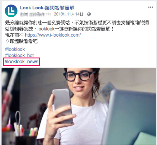 1.在FB貼文中加上#looklook_news