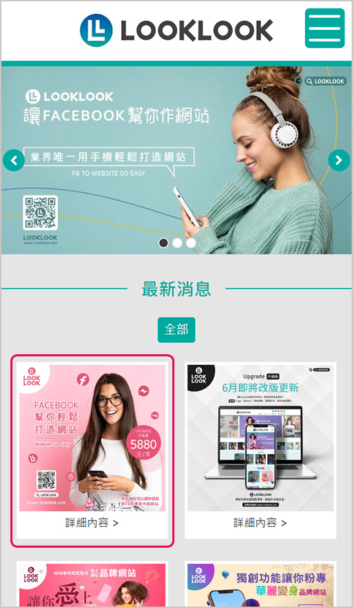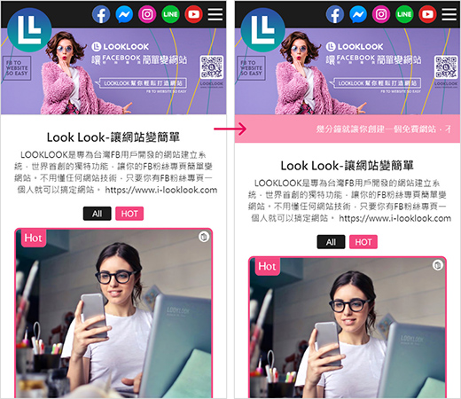 唯一讓你拿起手機就可以建立網站的服務系統現在就來體驗看看!LOOKLOOK輕鬆將您的Facebook粉絲專頁變成網站! -