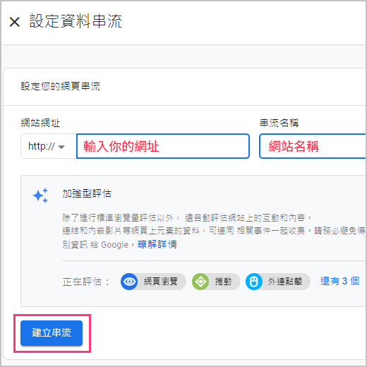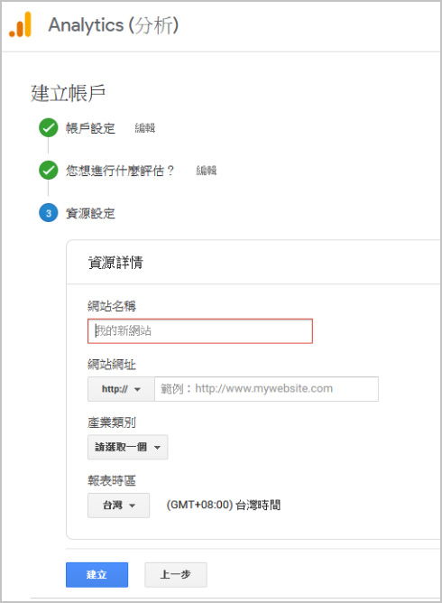 4.輸入你網站與網址的相關資料後建立