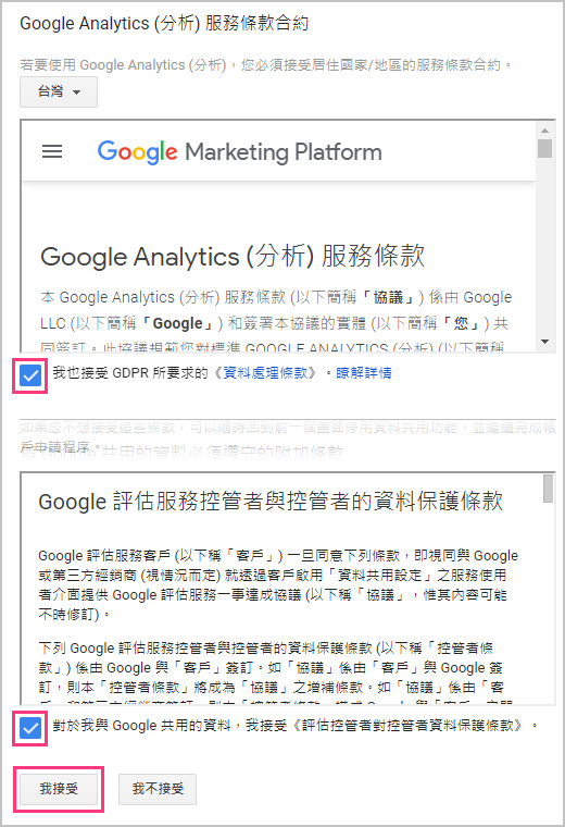 5.勾選同意兩項條款,按下我接受