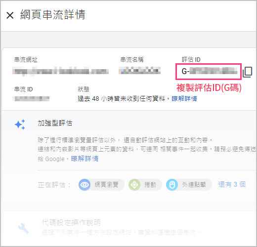 8.建立完成後就可以複製你的評估ID(G碼)