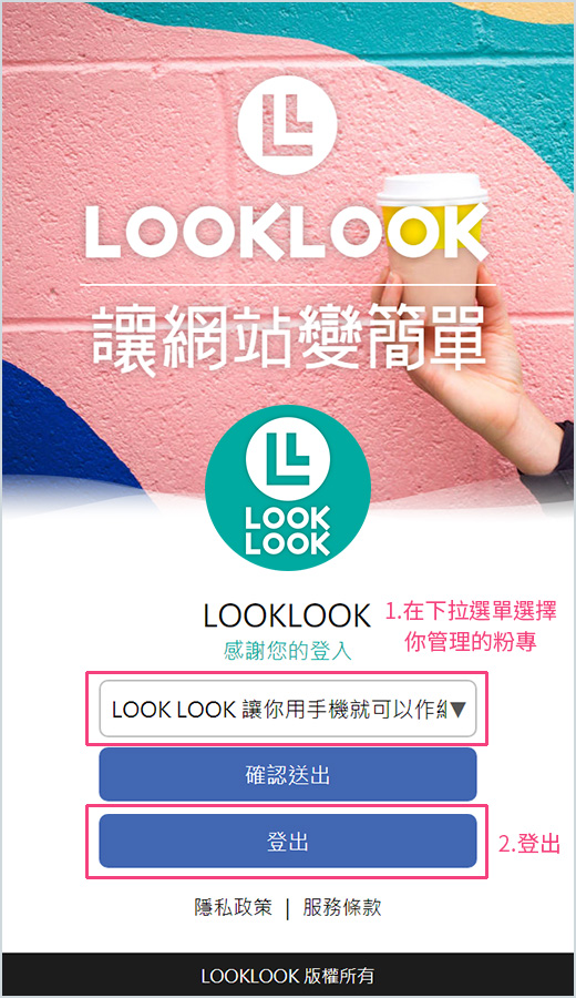 6.回到LOOKLOOK看看系統畫面,選擇你想管理的粉絲專頁並點擊確認