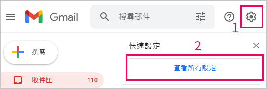 1.點擊Gmail右上角齒輪,再點選查看所有設定