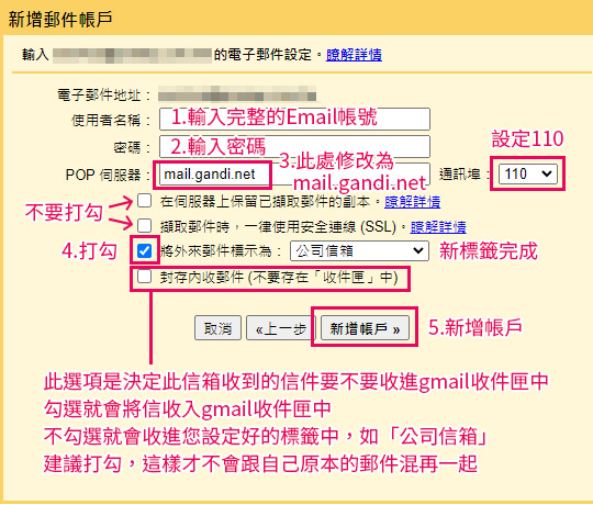 11.依照圖上說明設定,最後點選新增帳戶