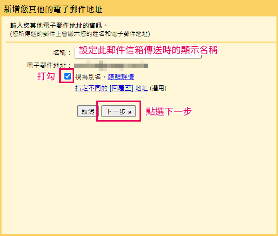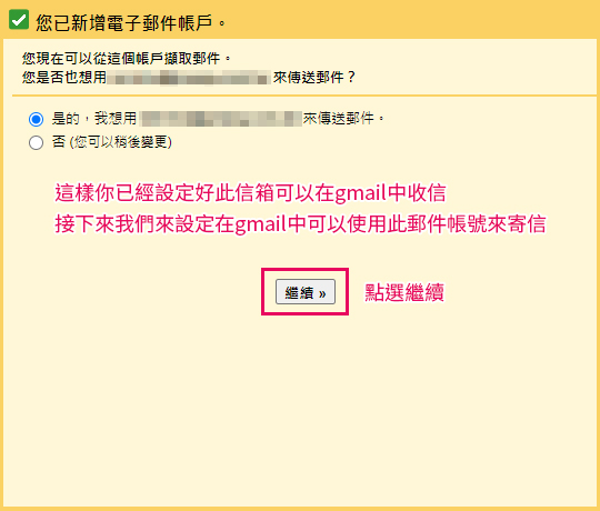 9.同視窗中我們繼續設定此帳號可以在Gmail中寄信